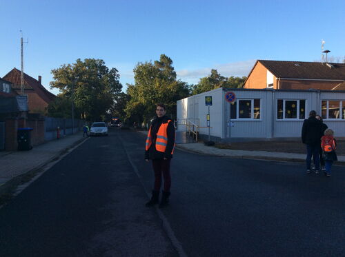 jeden Morgen und Mittag steht Steffi Kühne zusätzlich zur Busaufsicht an den Haltestellen der Löwenzahnschule, um die Schüler und Schülerinnen sicher in die Schule zu geleiten.