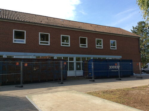 in den letzten Wochen sind die Container vor der Schule aufgestellt worden. Anfang dieser Woche hat der Bauhof damit begonnen, die Klassenräume aus- und die Container einzuräumen.