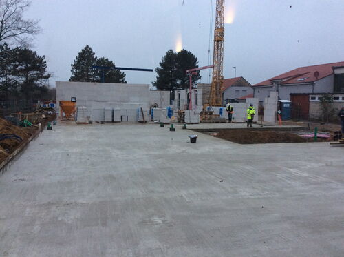 es tut sich wieder einiges auf unserer Baustelle: Das Fundament des Kindergartens ist mittlerweile gegossen. Unübersehbar wurde auch ein Kran zur Unterstützung bei den kommenden Arbeiten aufgestellt. Der Technikanbau vor der Schule steckt zwar noch in den Kinderschuhen, wächst aber stetig.