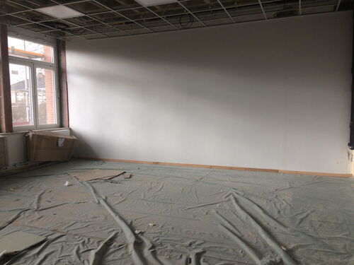 inzwischen haben unsere Räume neue Heizkörper, die Fenster sind eingebaut und sogar die Bodenbeläge und Fußleisten sind fertig.